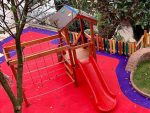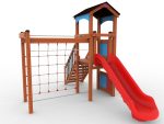 Explorer PlaygroundsLyra is a playgrounds item where can you climb a net,make parallel rope passes and slide up and down.It has a inviting colorful look that calls kids to play with it.